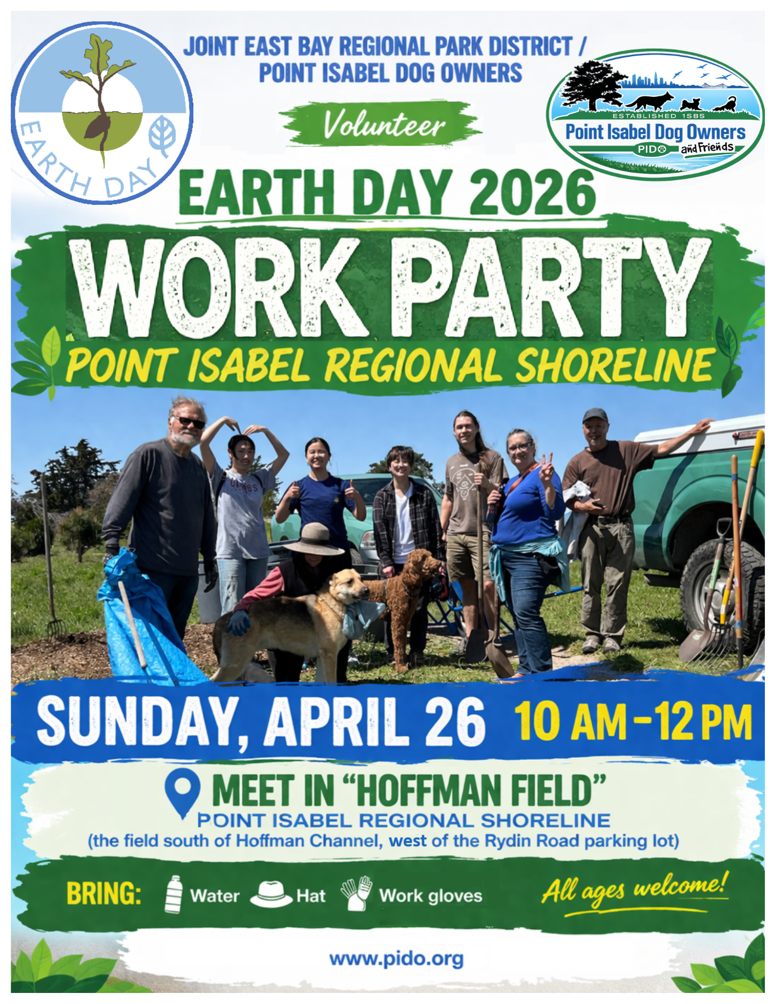 Point Isabel Dog Owners & Friends (PIDO) has worked hard since 1985 to keep Point Isabel Regional Shoreline clean, safe, and, most importantly, off-leash. We are a volunteer-run 501(c)(3) nonprofit organization.